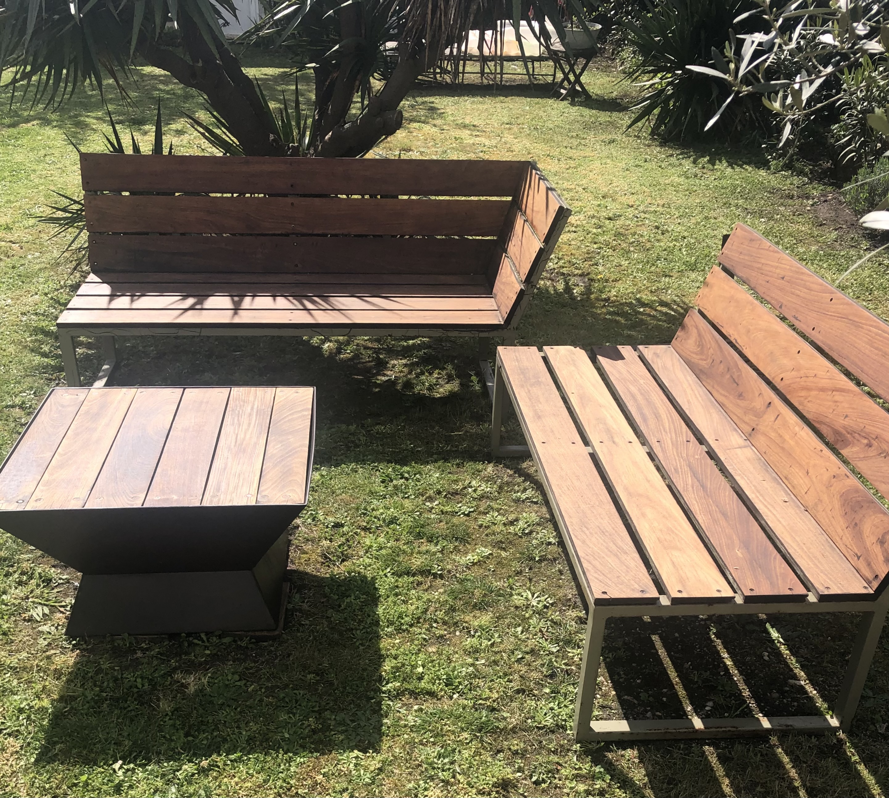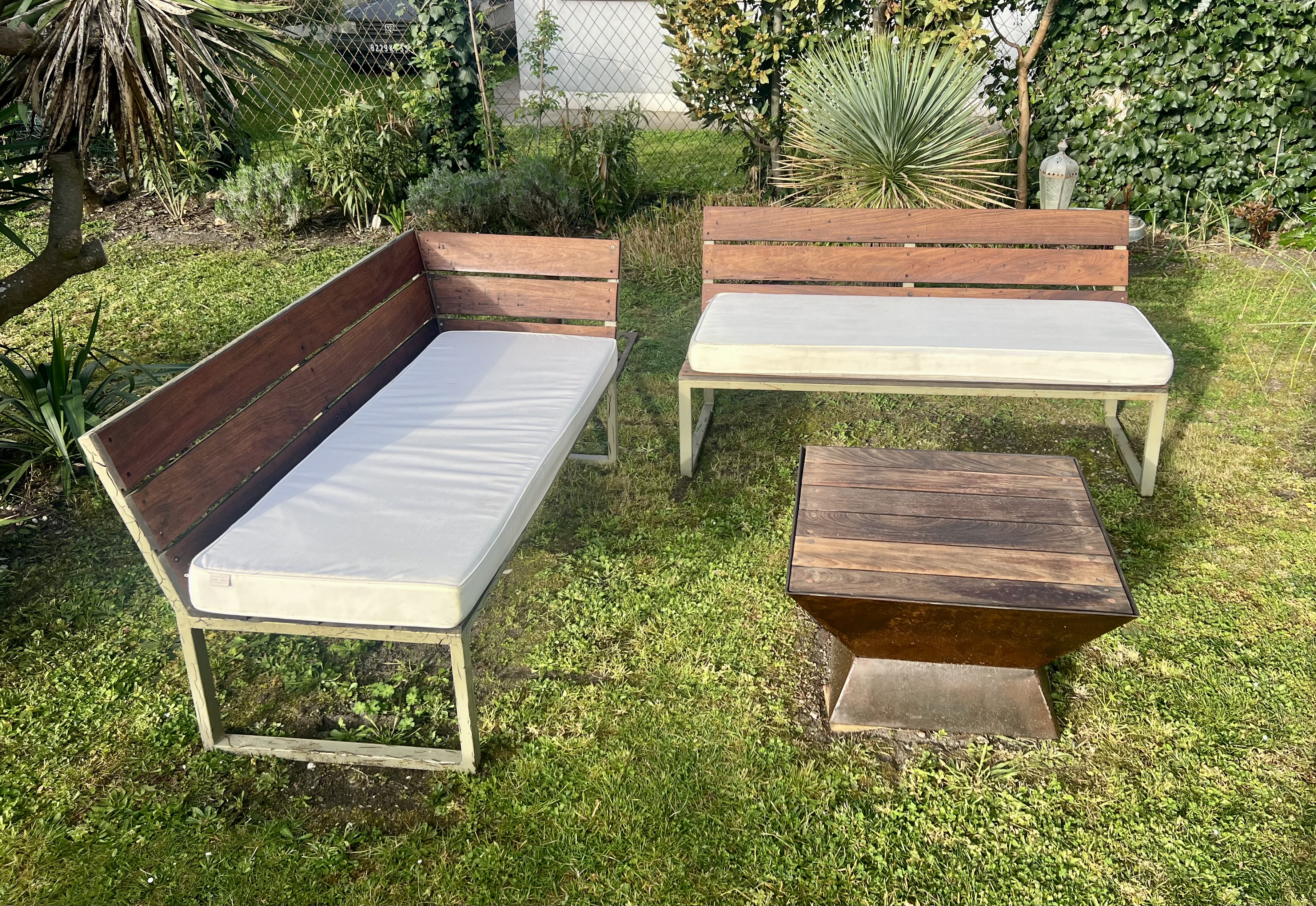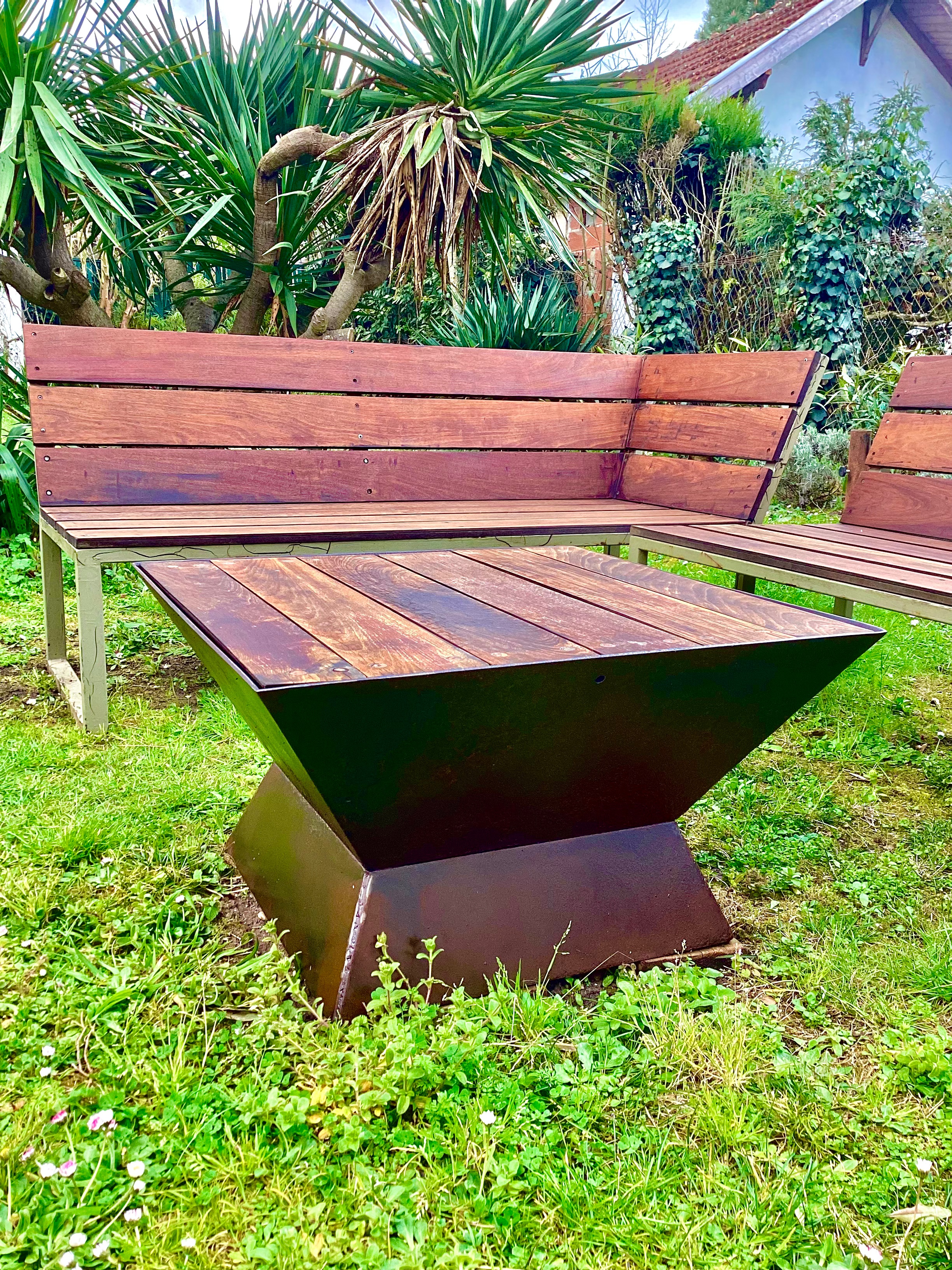 À l’extérieur aussi, le mobilier sur mesure peut allier style et résistance. Nous créons des meubles d’extérieur en acier et bois qui résistent au temps, aux intempéries et qui s’intègrent parfaitement à votre jardin, terrasse ou balcon.